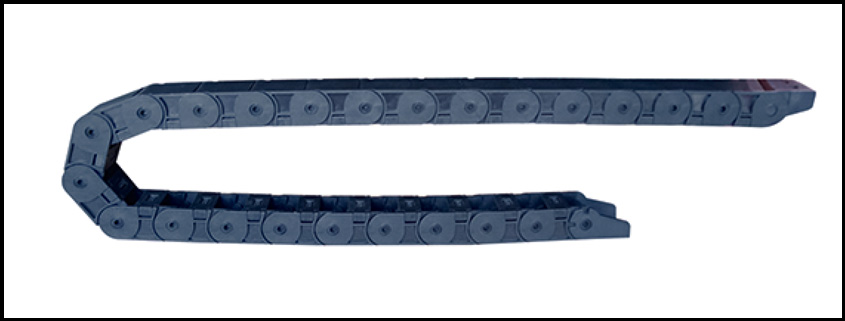 拖鏈:有尼龍拖鏈和鋼鋁拖鏈兩種拖鏈,均可以做成橋式,半封閉,全封閉式。尼龍拖鏈中間通過隔離片方式隔離開油電線,鋼鋁拖鏈通過隔離片和打孔隔離開油電水線。按照方便、易拆卸,彎曲靈活,阻力小,適合各種大小設(shè)備使用