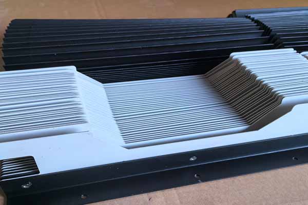 風(fēng)琴防護(hù)罩:采用的是防水、防油、阻燃不同材質(zhì)加工而成,通過增加滑輪、滑塊、拉帶等方式適應(yīng)更多的機(jī)床運(yùn)行環(huán)境,所以定做時(shí)要按照客戶提供的圖紙和產(chǎn)品使用環(huán)境才可以做到適合的風(fēng)琴防護(hù)罩